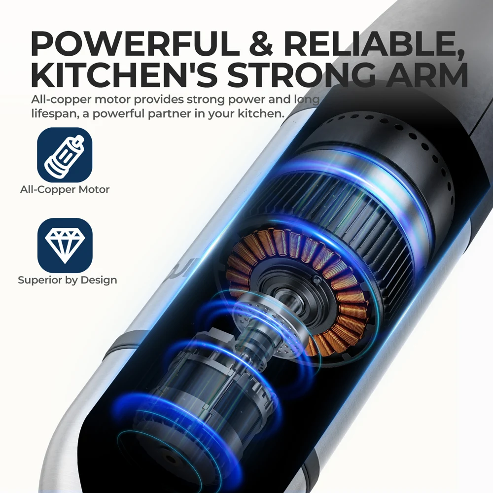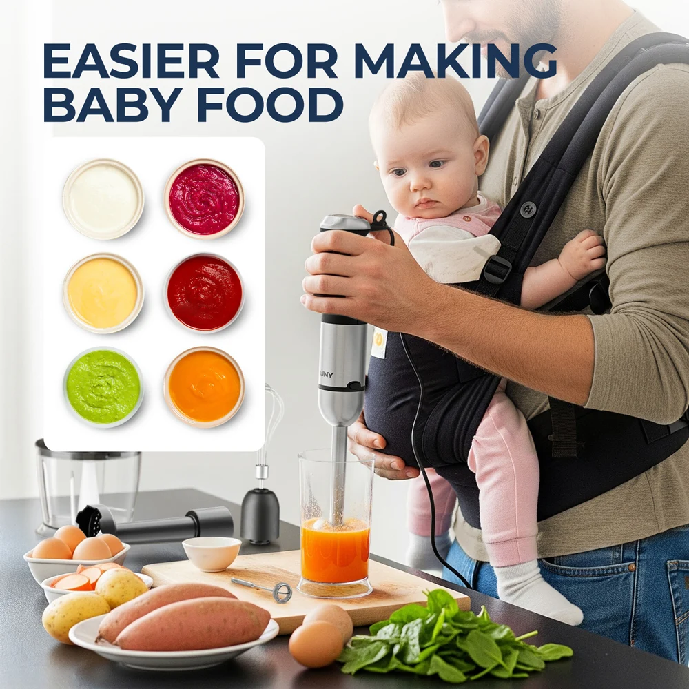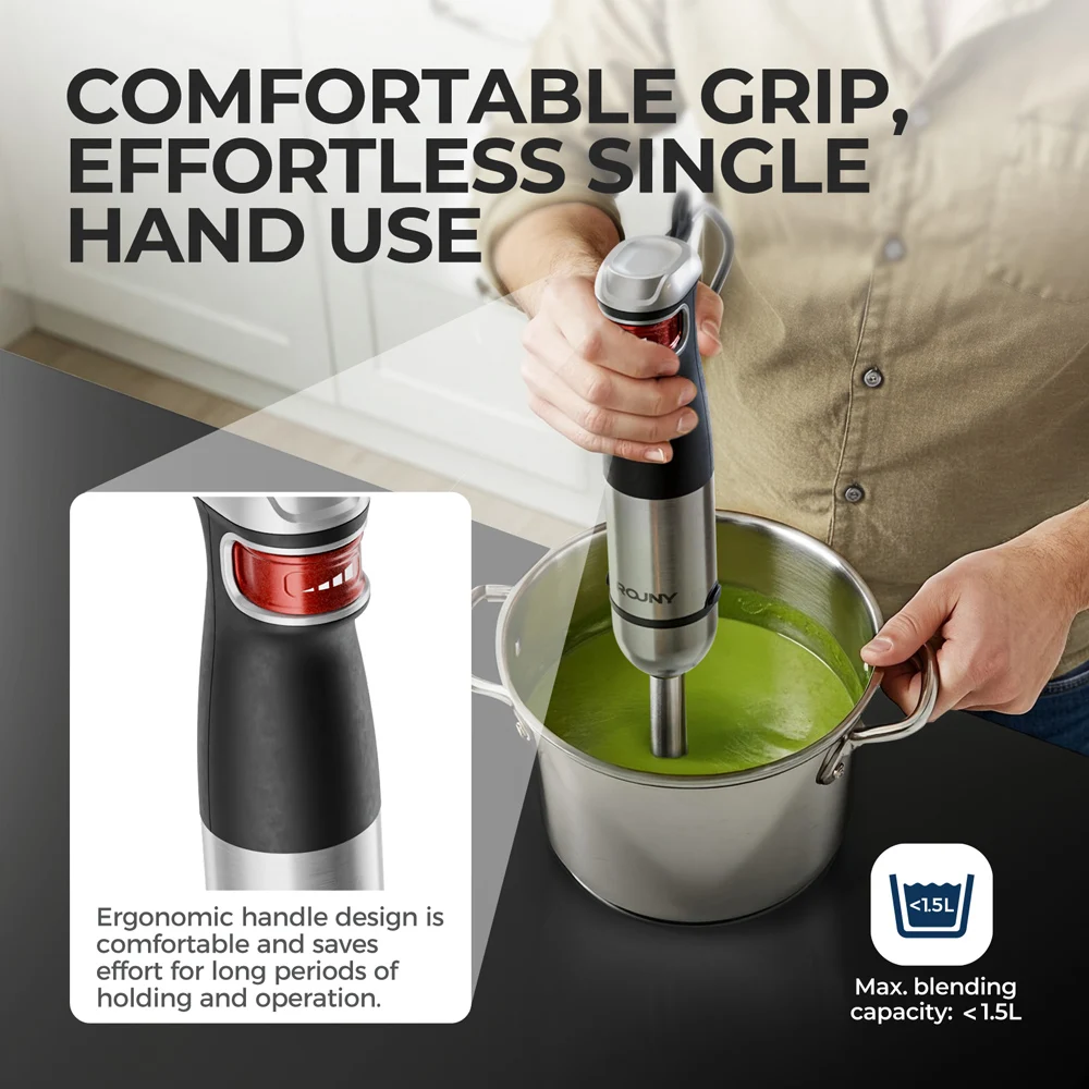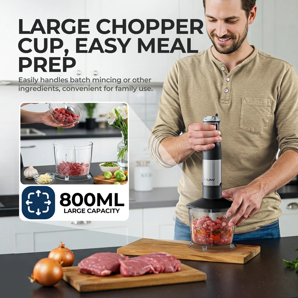خلاط يدوي كهربائي 6 في 1، خلاط يدوي متعدد الأغراض، شفرات من الفولاذ المقاوم للصدأ، للمنزل والمطبخ، بحد أقصى 1500 وات