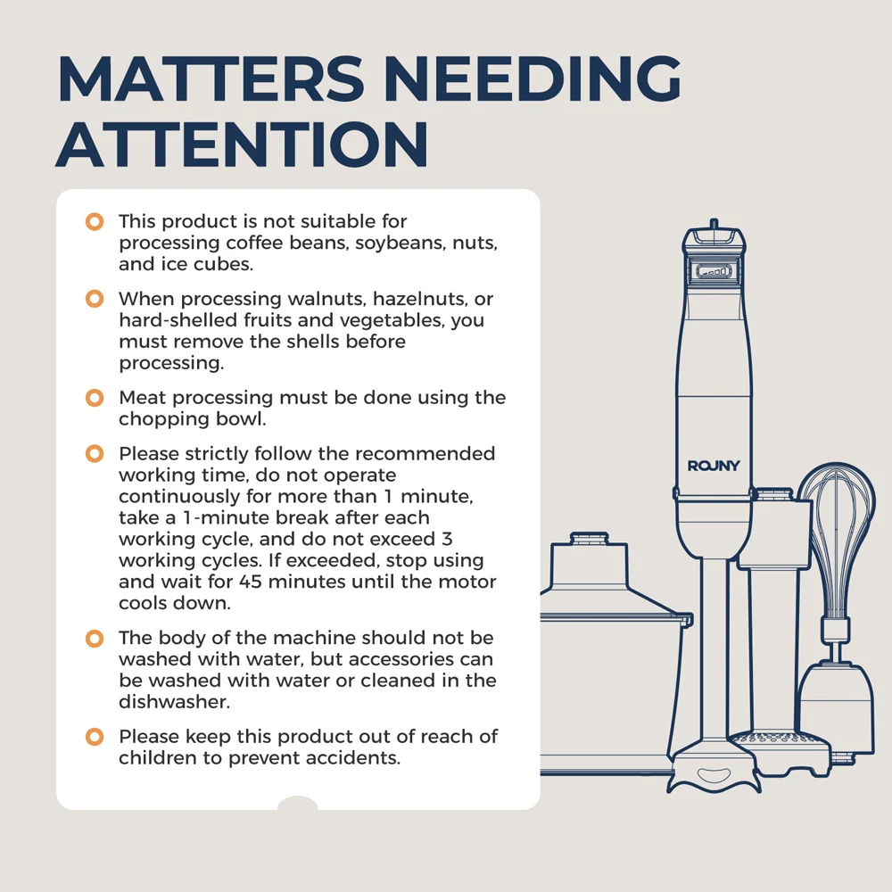 وظيفة: أخرى، فواكه وخضروات، منتجات الفول، مستخرج العصير، معجون الأرز، خمس حبوب، عصير الذرة، الشاي بالحليب والمربى، عصير الفواكه، تقطيع الخضار، فرم اللحوم، الطحن الجاف، تقليب البيض، مخفوق الحليب، الخلط