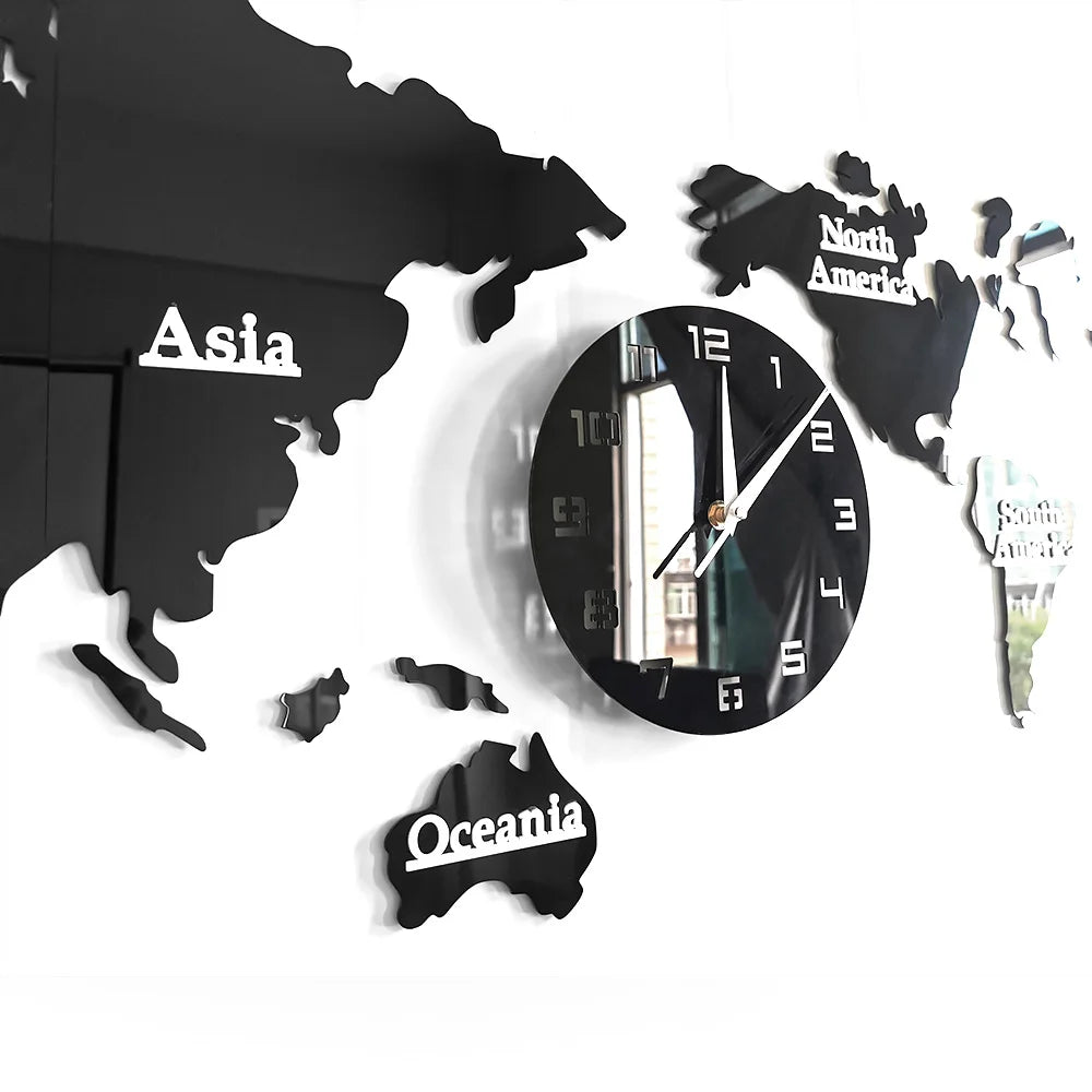 Die einzelnen Teile sind aus 2 mm dickem, glänzendem schwarz-weißem Acryl gefertigt und haben auf der Rückseite einen doppelseitigen Kleber, mit dem sie an die Wand geklebt werden können. Die Uhr ist auch fertig zum Aufhängen mit einem an der Uhr befestigten Clip.