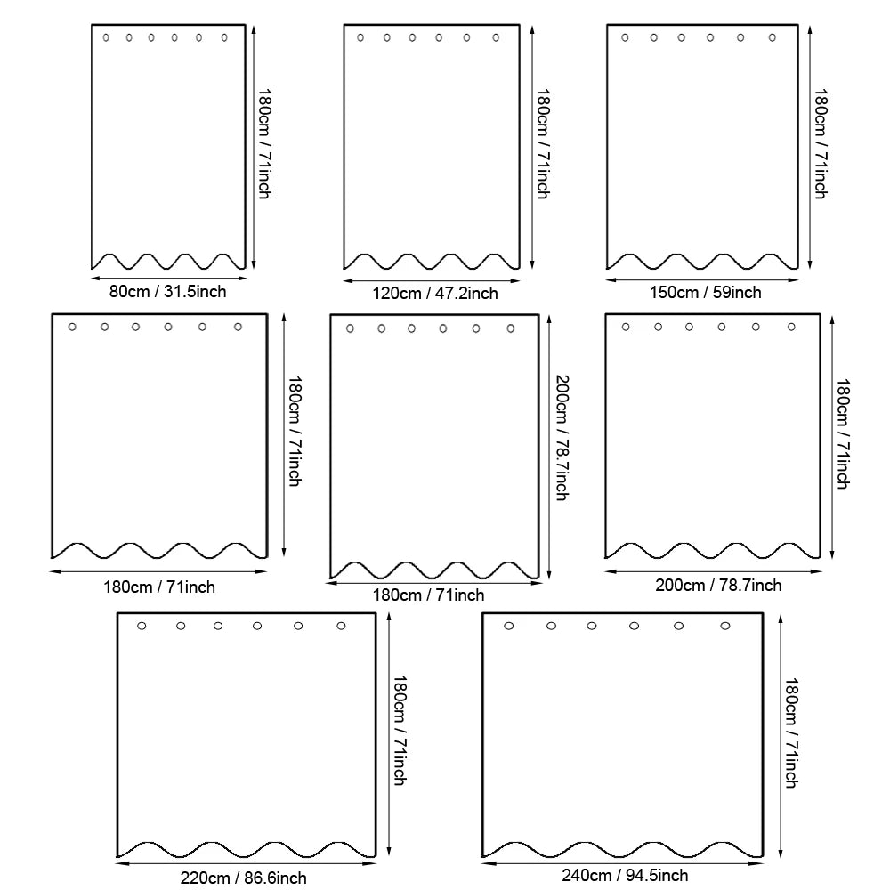 2) Dimensioni della tenda(L è la larghezza, H è l'altezza): L80xA180cm, L120xA180cm, L150xA180cm, L180xA180cm, L180xA200cm, L200xH180cm, L220xH180cm, L240xH180cm