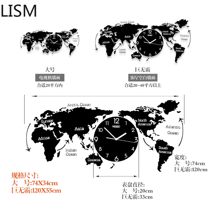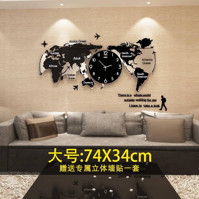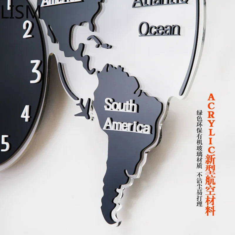 Kreatywna mapa świata duży luksusowy zegar ścienny nowoczesny Design salon akrylowe 3d Home Decor cicha ściana Clcok Reloj De Pared 2020