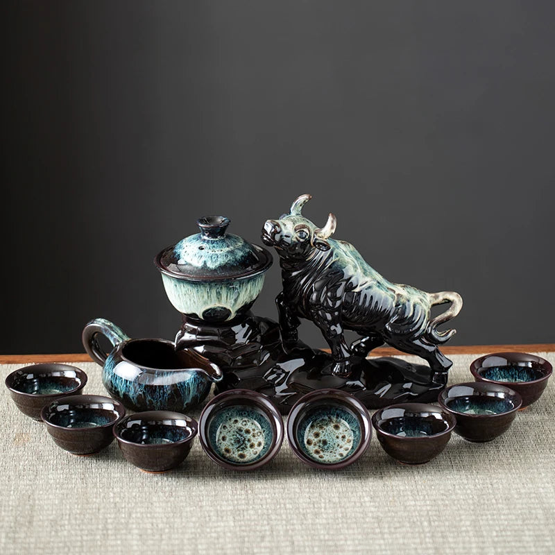 【Kung Fu Tea Set】Chinese Traditional Handmade Ceramic Kung Fu Teapot Set