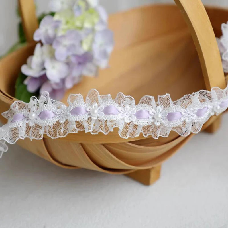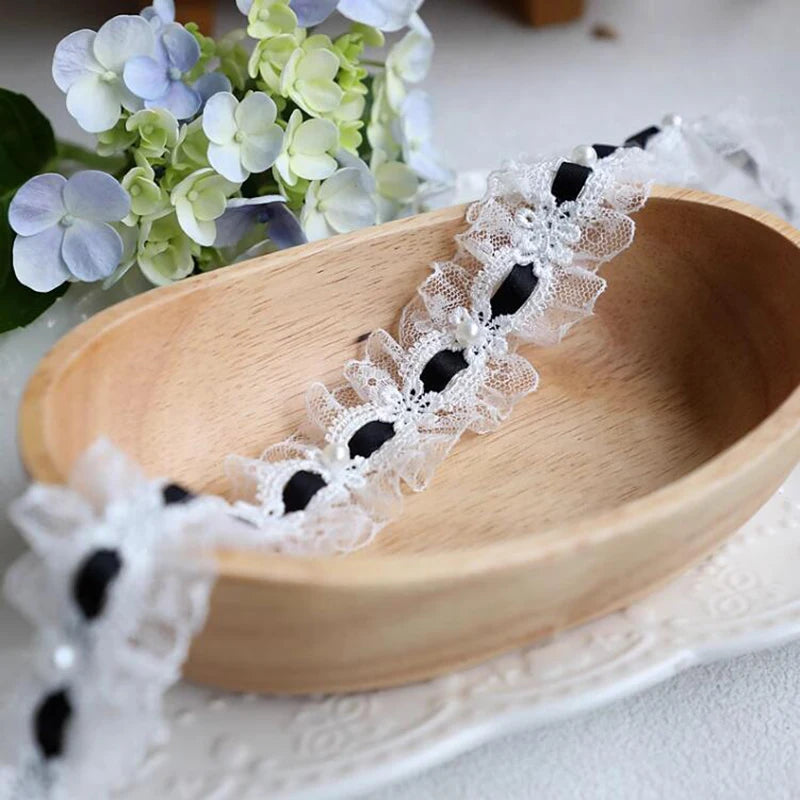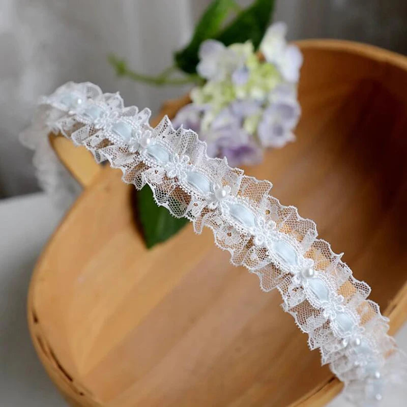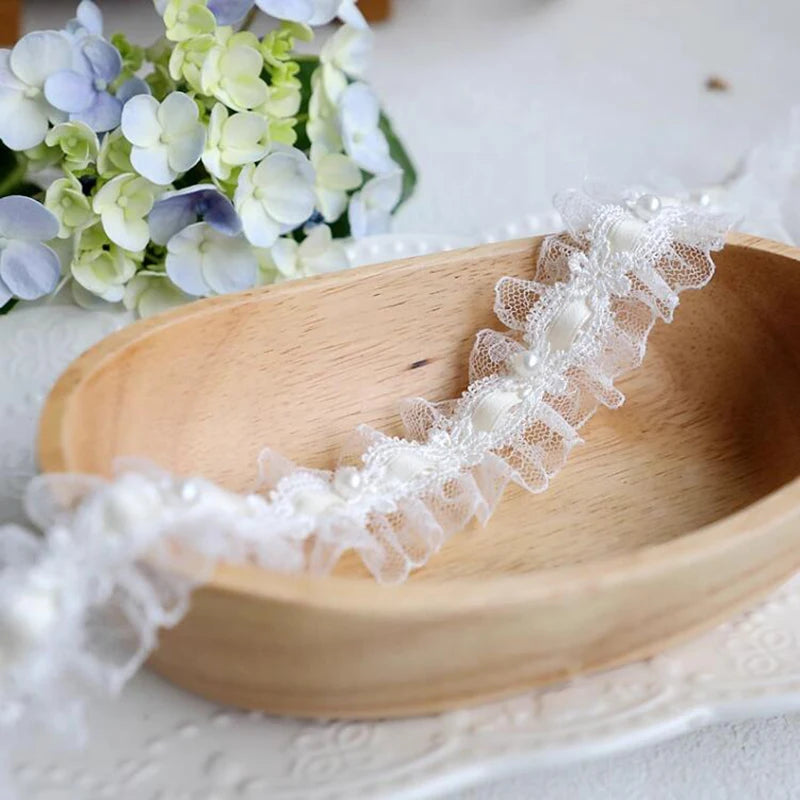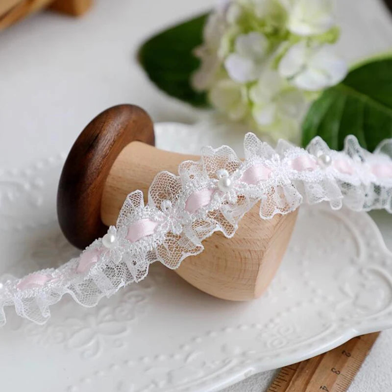1 Yard Lvory Bead Ruffled Lace Fabric Edging Satin Ribbon DIY Dress Clothing Curtains Furniture Decorations 3.5cm Wide
