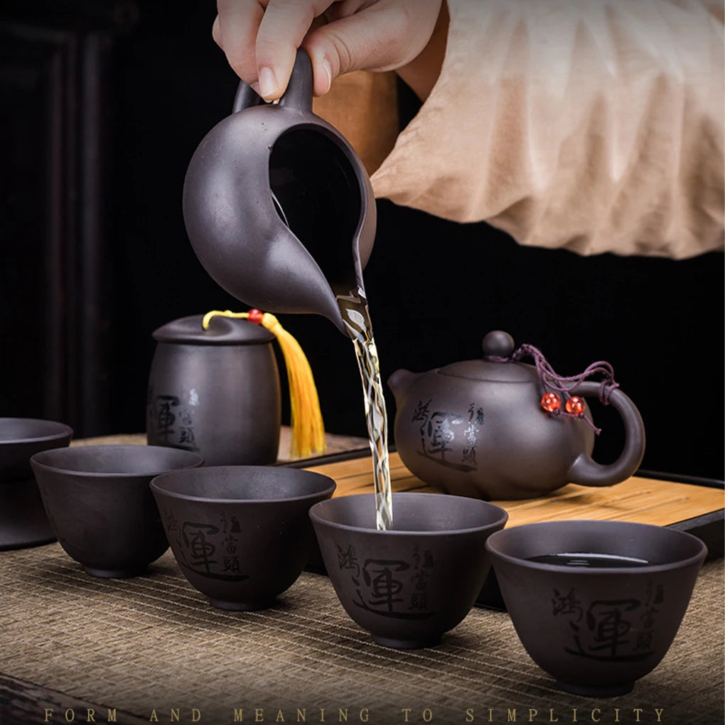Purple sand ceramic teapot set: Its elegant body and embedded filter water stream provide aesthetics and functionality. Get ready to taste the rich flavor of tea with this special teapot.