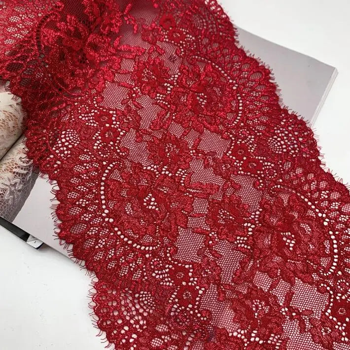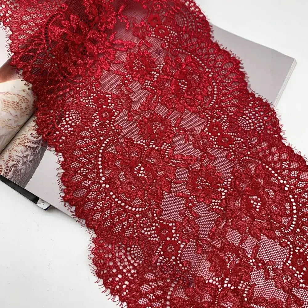 22.50cm Elegant Shiny Purple Mulberry Red Eyelash Elastic Lace With Golden Foil Special Shimmer Deco Trimming Garment Accessory DIY Material Fabric Twinkle