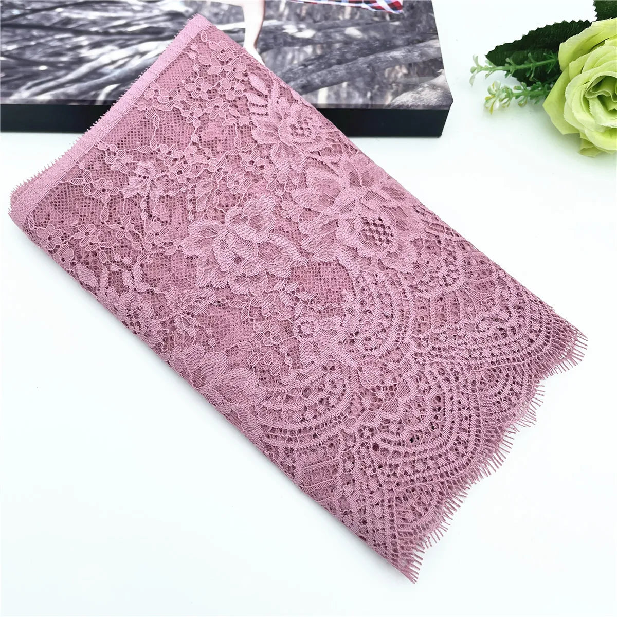 Width 24.50cm Lake Blue Non-Stretch Eyelash Lace Trims Dark Purple For Clothing Accessories Dress Sewing Applique Costume Lace Fabrics Skirt
