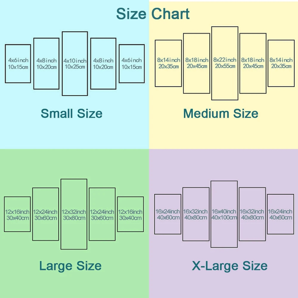 8. We provide custom print service, we can help you to split picture to fit 5 panels, 3 or 4 panels and at any size you want.