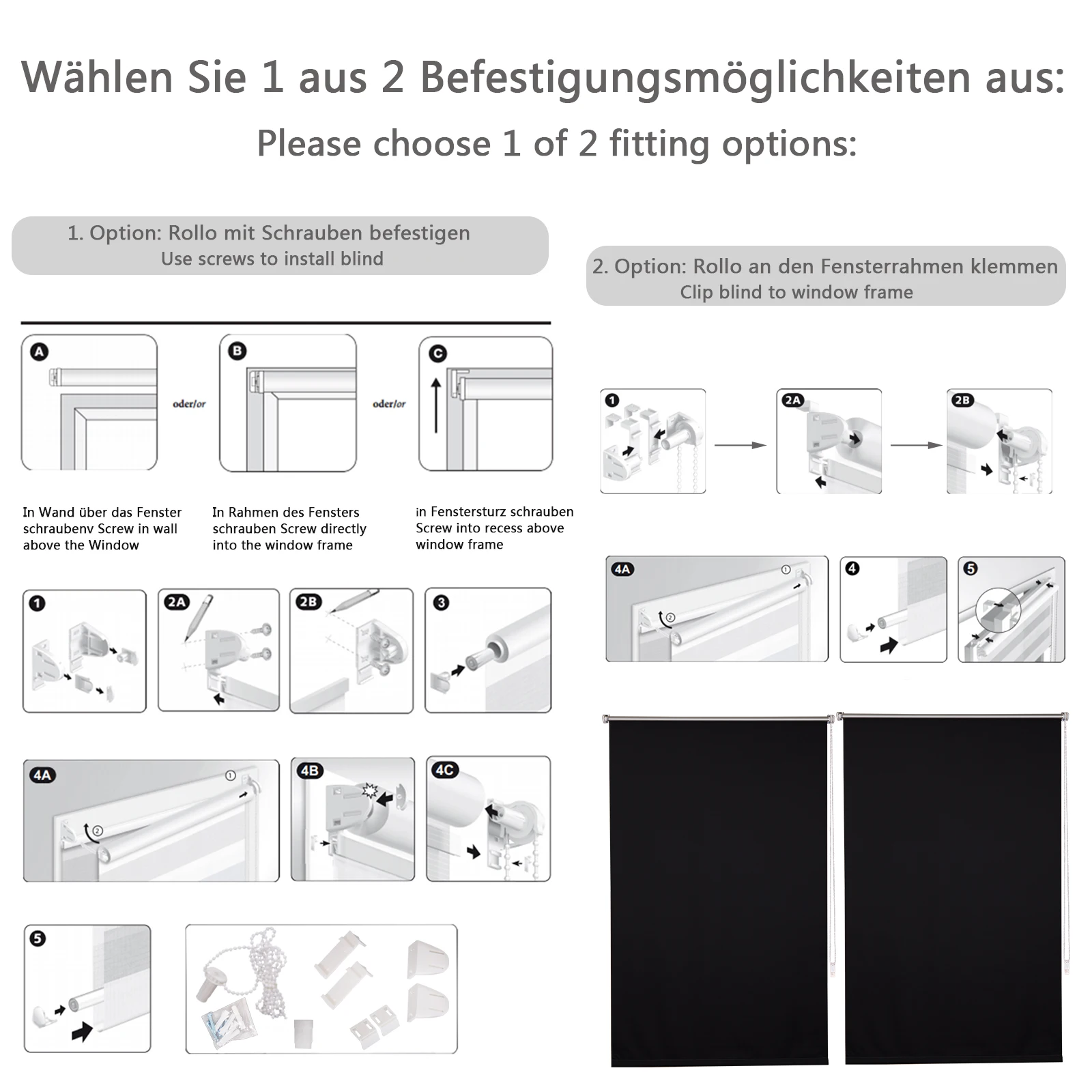 Easy assembly: ❤ You can install this roller blind successfully in 10-15 minutes. Mounting kit: clamping support without drilling + set of screws for alternative drilling (Two fixing means, with drilling or without drilling, all accessories are included.)
