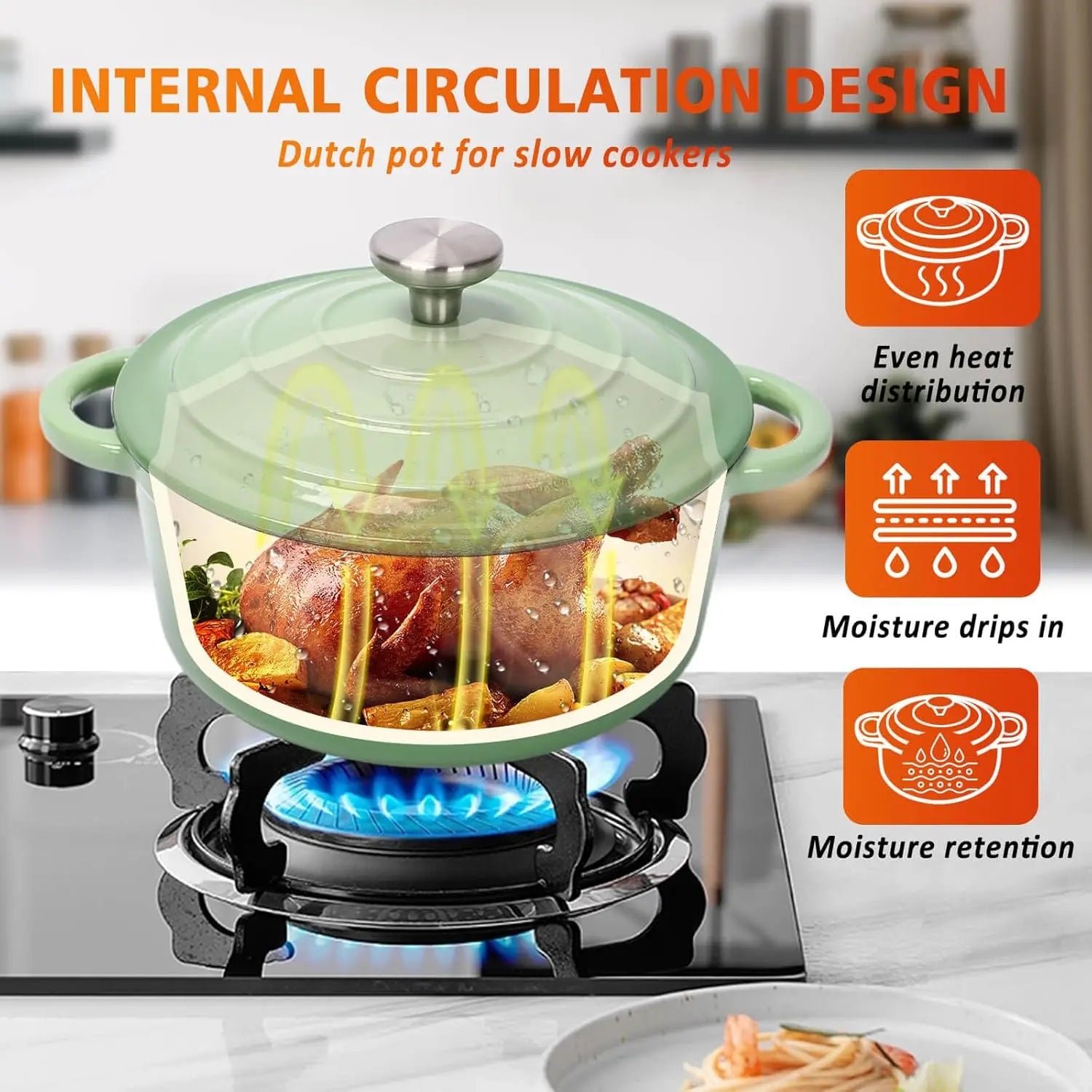 6. [Self-Circulating Lids for Optimal Flavor] - The Dutch oven and sauce pan lids are designed with a unique raised pattern, allowing water vapor to circulate within the pan, locking in nutrients and moisture, and distributing them evenly across your food. This thermal self-circulating feature helps preserve the natural flavors and nutrients of your ingredients, providing consistently delicious and healthful meals.