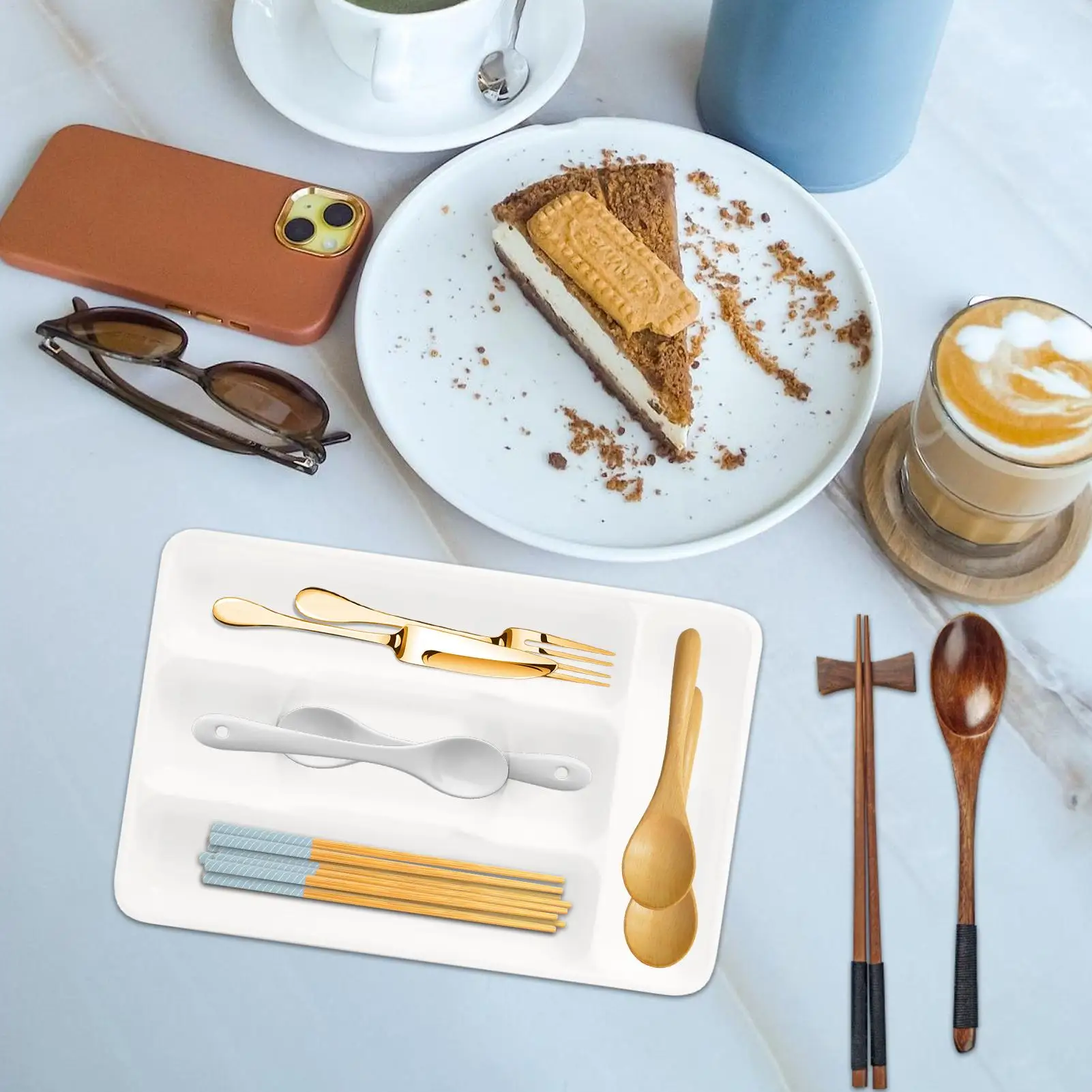 Simplify meal prep with this efficient silverware organizer offering a 4 compartment storage box holder. Suitable for spoons forks and more it is an excellent addition to any kitchen in homes apartments or houses. Place it on the countertop inside cabinets or pack it for college dorm life and camping adventures keeping all items accessible and organized.