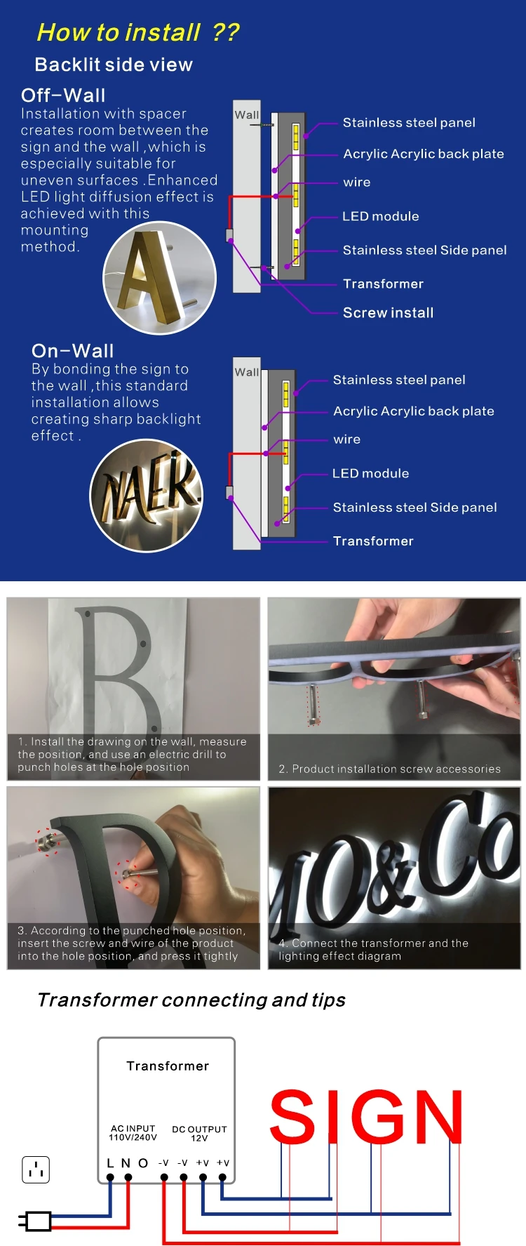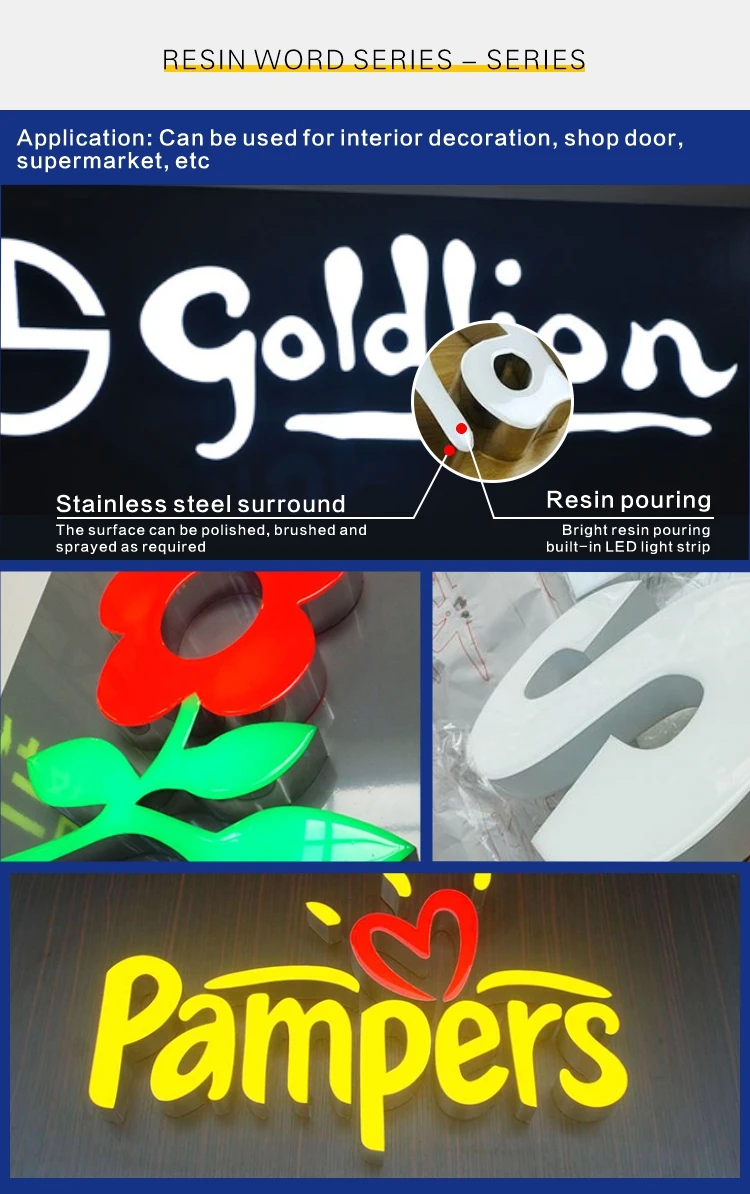 3. Please note your raised lettering, Rim Color, Lighting Color, Acrylic board (clear/frosted)