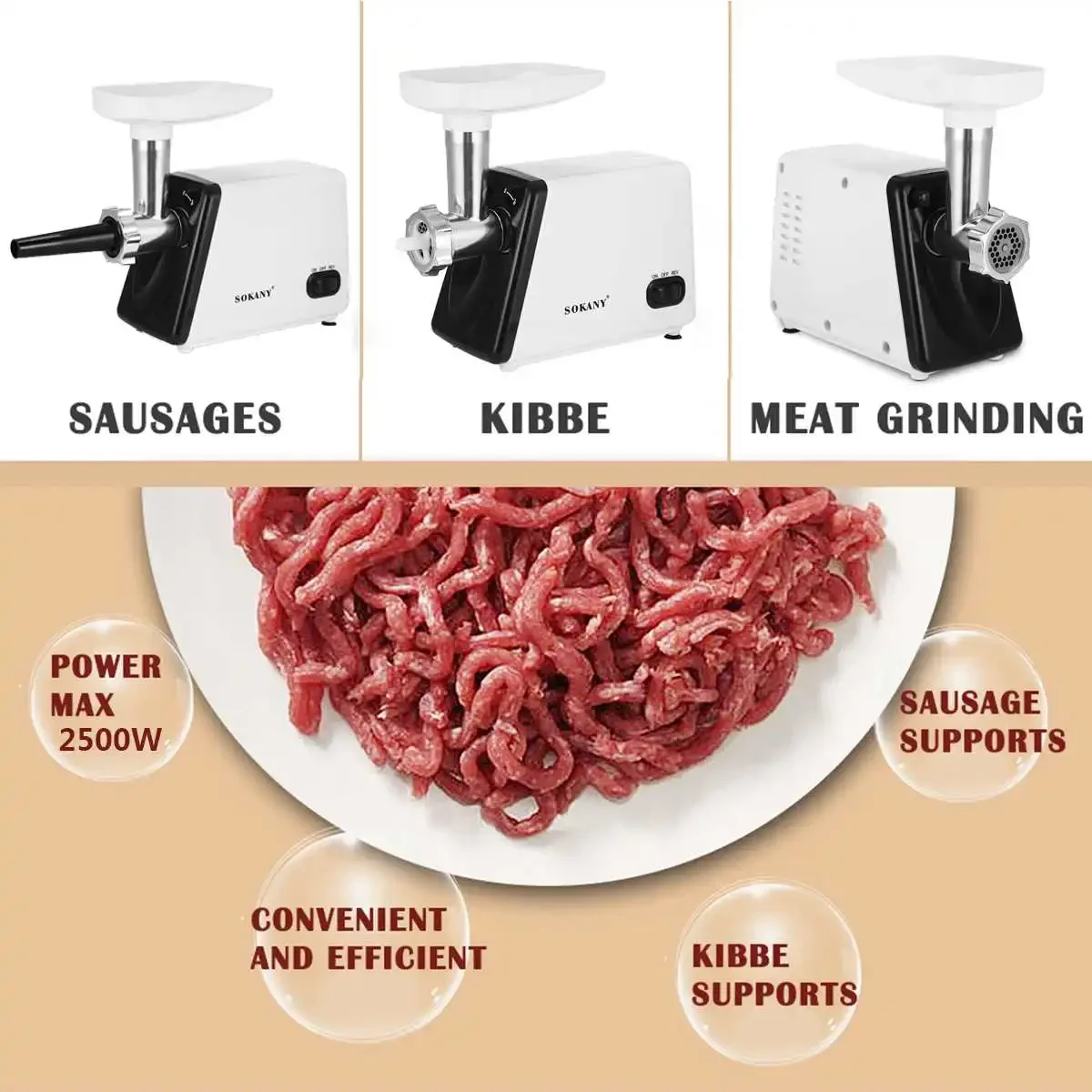 ��【Powerful Motor for Fast Grinding】 This meat grinder features 2500 Watts of peak output power and 800 Watts rated power.Grind 2 Pounds meat per minute!Feature Big-capacity and detachable tray, stainless steel wrapped body,full Metal Gear Box & Metal Gears and all food-grade materials parts,it is a fast, convenient and economical way to make ground meat at home. A reliable helper!