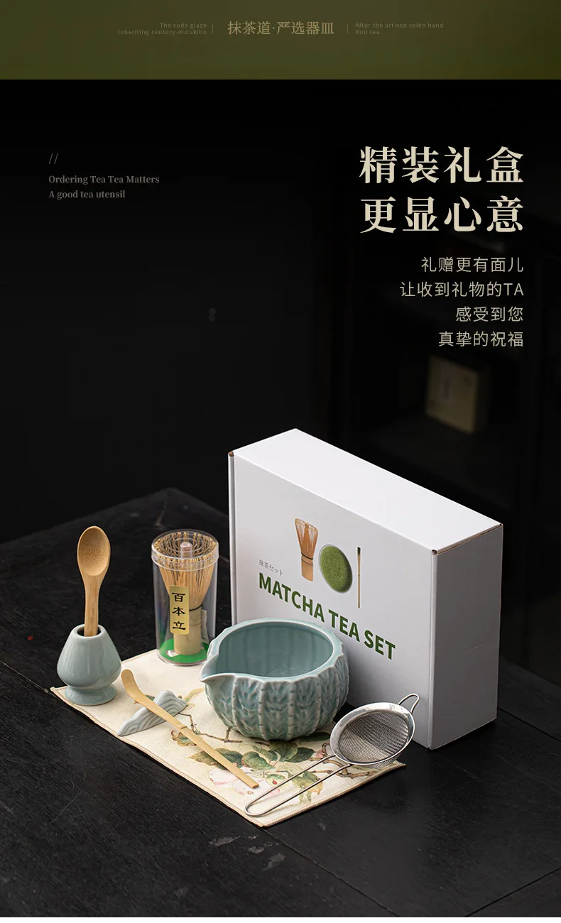Japanese Cactus Matcha Set with Ceramic Bowl Bamboo Matcha Whisk Teaspoon Tea Sets Tea Lovers Gifts Tea-making Tools Accessories