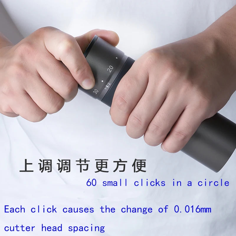 The grinders look like twins, they shared the same weight of 600+g, the same exterior adjustment design where 60 clicks per round, the same hopper volume of 30~35g, the shape of the conical ball.