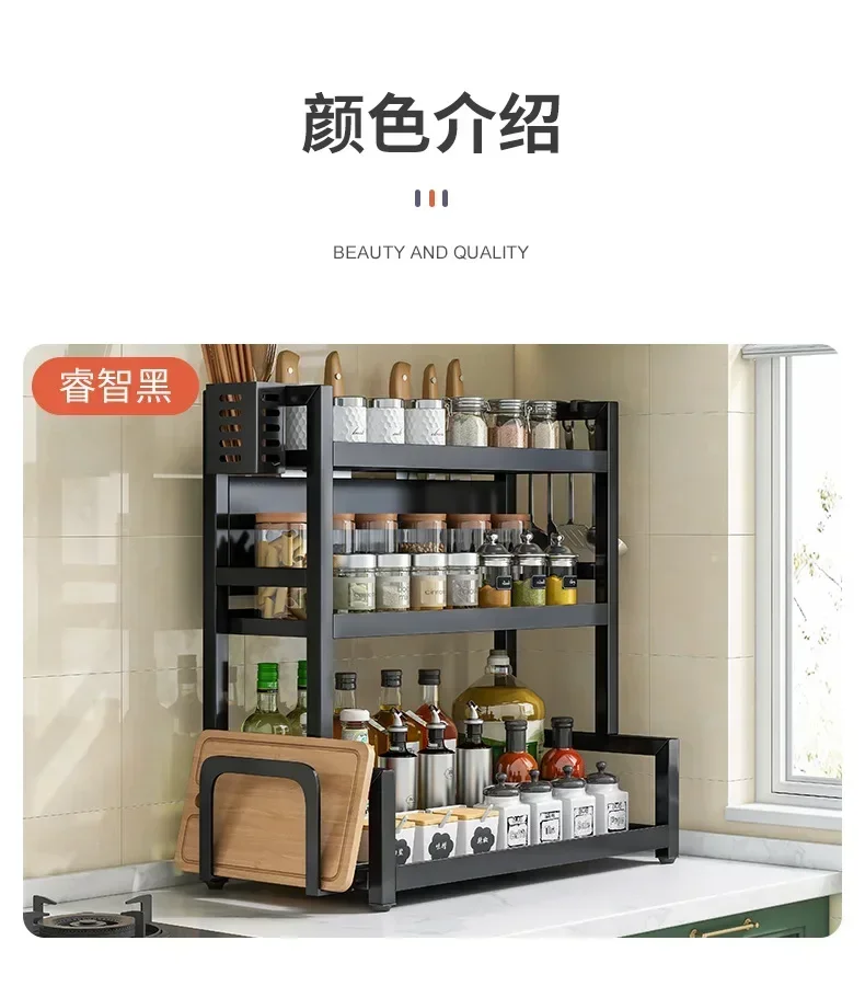 Sturdy Construction: The kitchen countertop organizer is made of heavy-duty steel material with powder coating, durable and easy to clean. The square legs of seasoning rack are thicker and enough strong to load up to 35lb