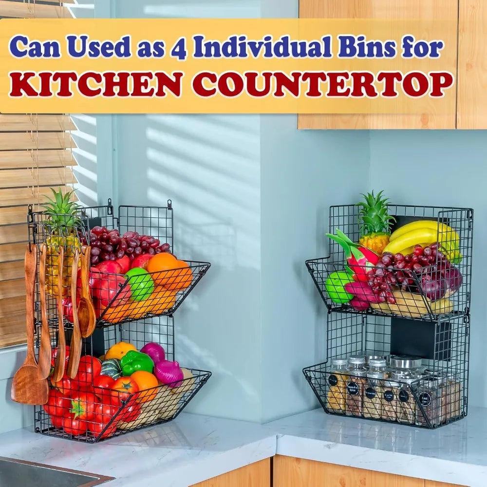 - LARGE STORAGE CAPACITY: X-cosrack wire basket applies 4 tier compact design and wall mounted design for maximum space-saving, keep your home tidy and clean all the time; slanted panels for easy accesss