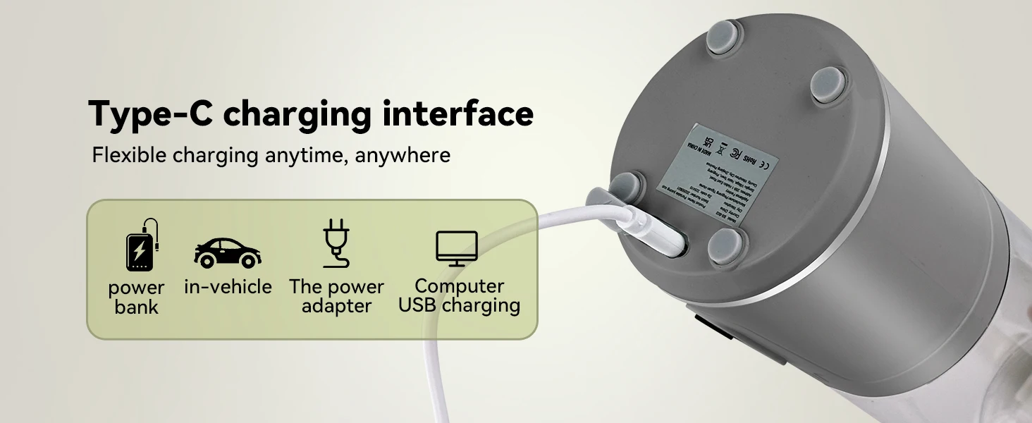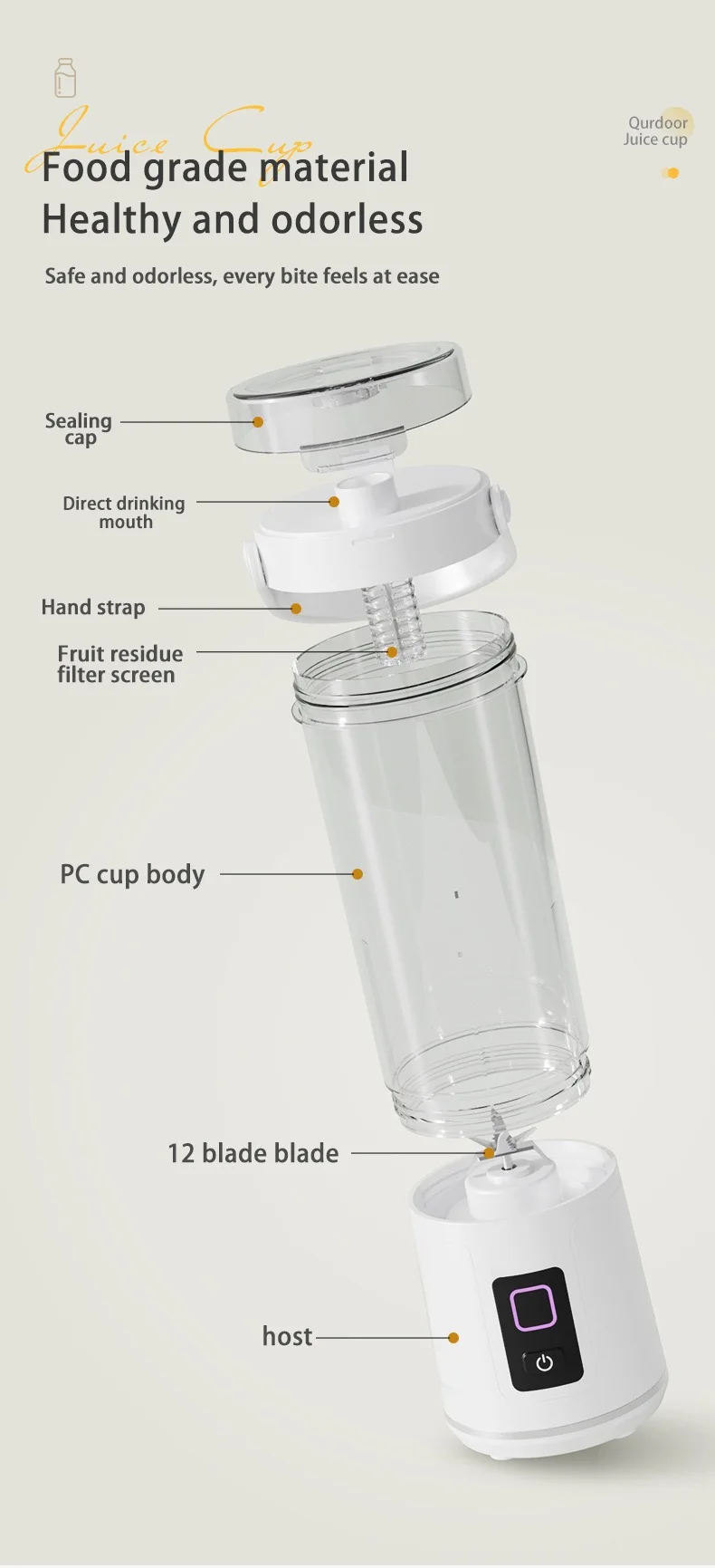 【Safety & Food-Grade 12 Blades 】Our Portable juicer made of high-quality food-grade, non-toxic ABS and 304 stainless steelFeatures an elegant hand-held M-cup lid design that not only looks beautiful but also allows for easy disassembly of the cup and machine.Features a robust 50W motor and 12 stainless steel blades spinning at 12,000 RPM.It can easily crush ice cubes and frozen fruits.Elevate your blending experience with convenience and speed.