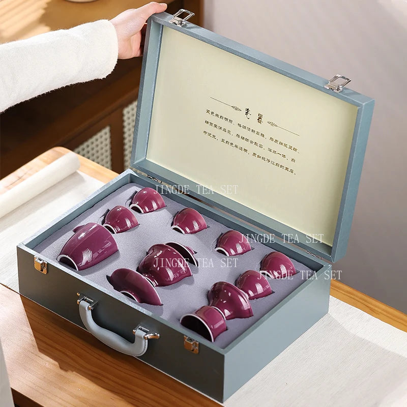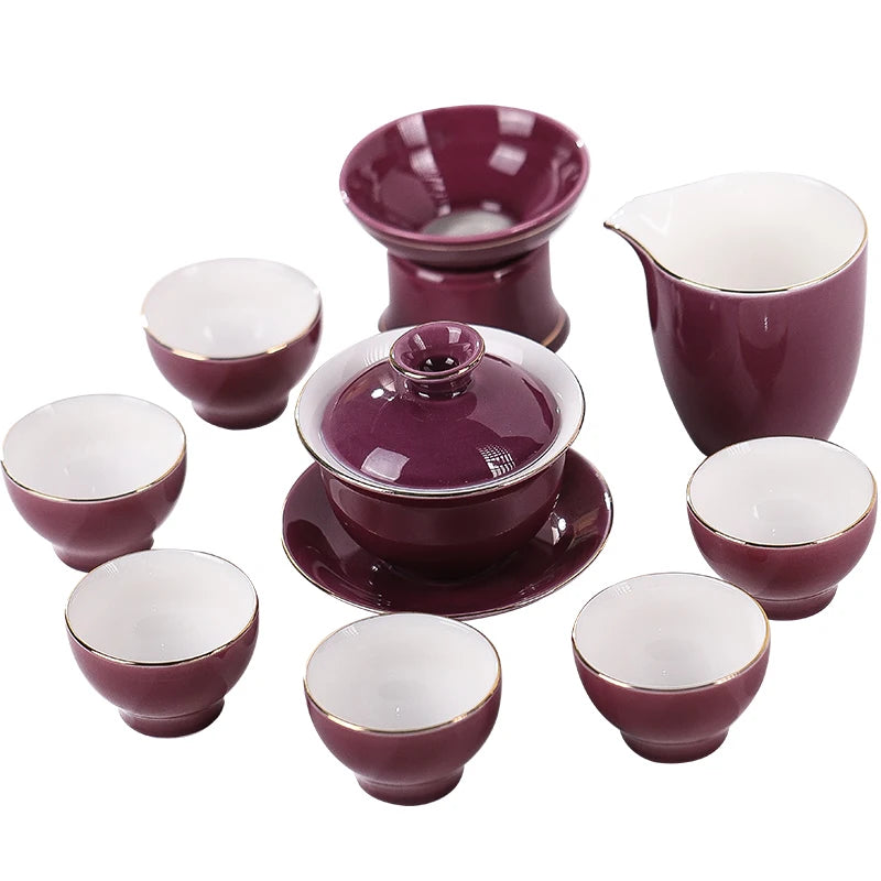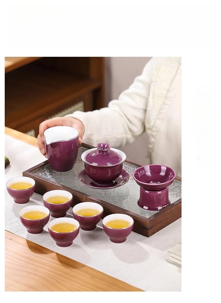 Purple Ceramic Tea Set High End Household Tea Set Office Tea Bowl San Cai Gai Bowl Kung Fu Teaset Accessories Fair Cup