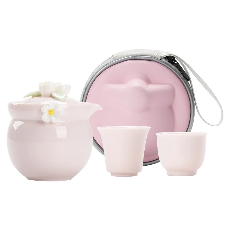 Simple Jasmine Kung Fu Tea Set Outdoor Portable Travel Tea Set Ceramic One Pot Two Cups Chinese Tea Ceremony Accessories