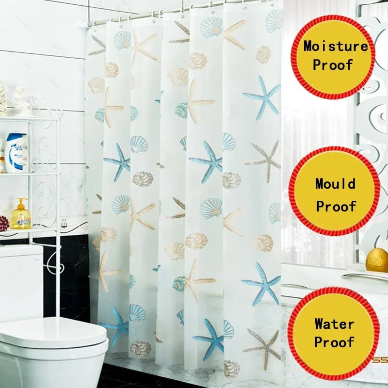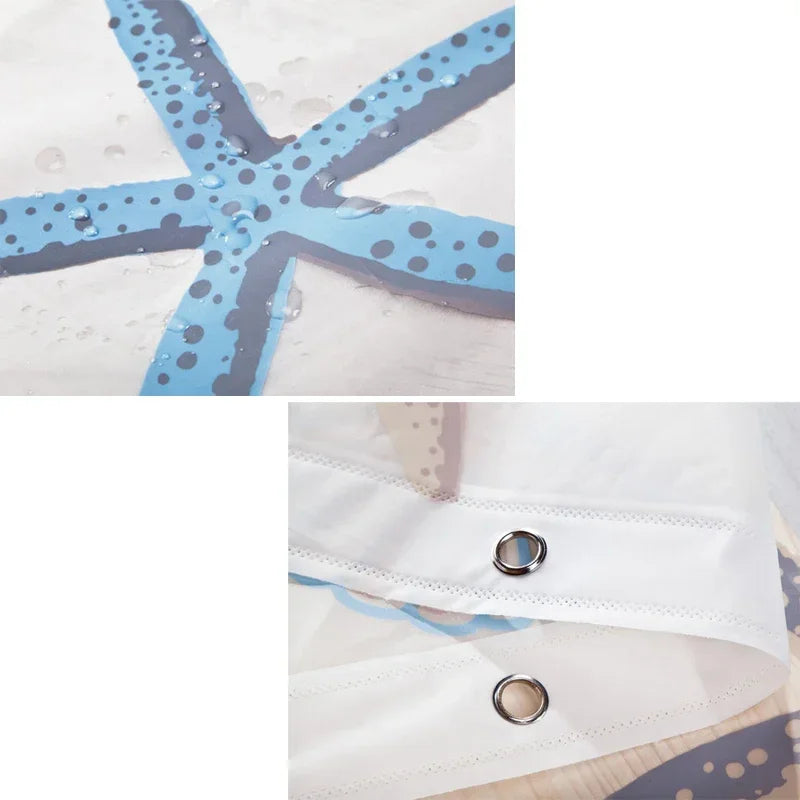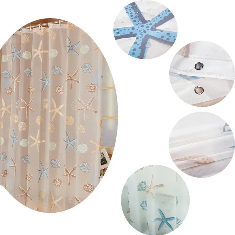 Starfish Pattern PEVA Shower Curtain Seaside Style Bathroom Bath Curtain With Hooks Waterproof Mildew Bathroom Accessories