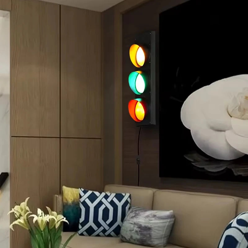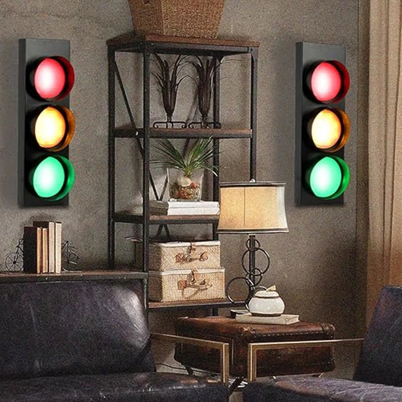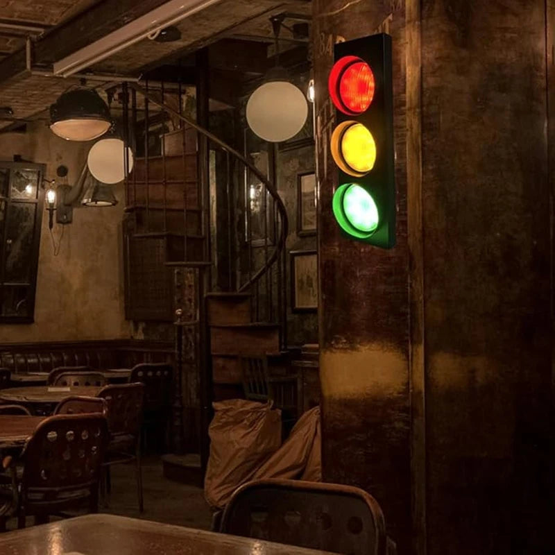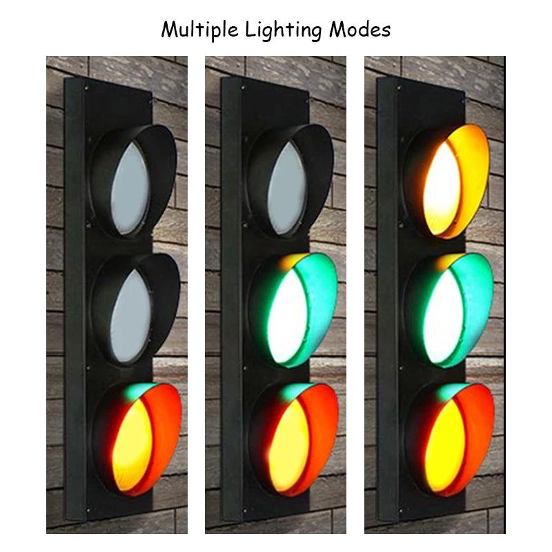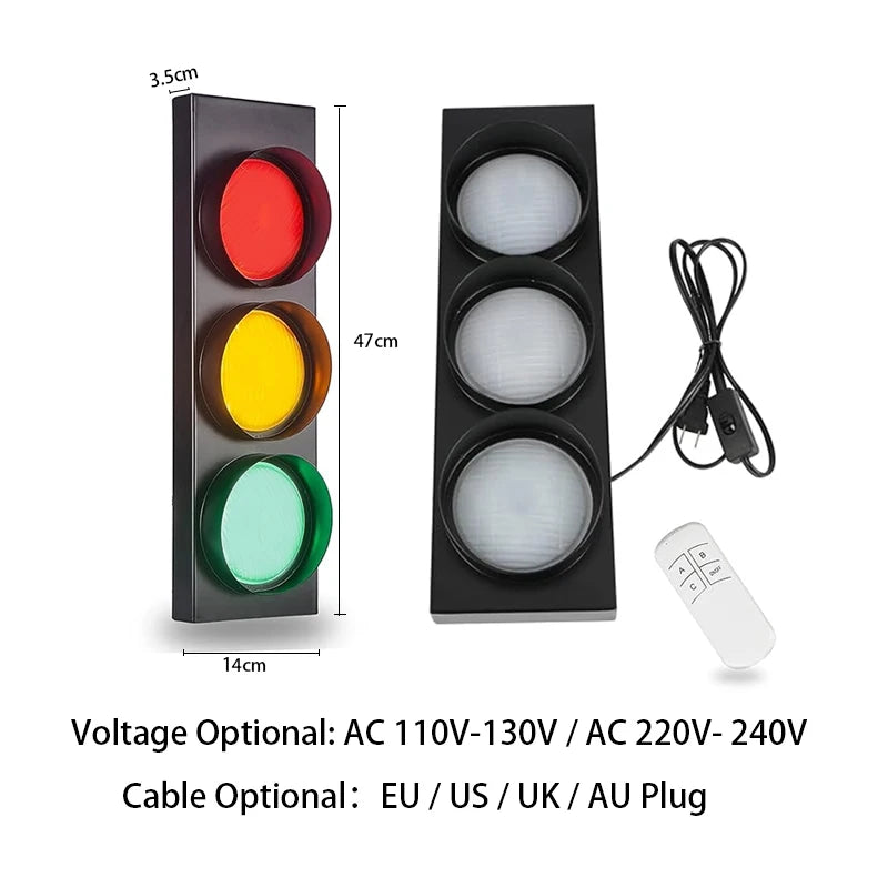 Retro Kids Bedroom Stop Light Home Office Bar Garage Car Room Decor Wall Light with Remote Control - 3-Color Adjustable LED Lighting