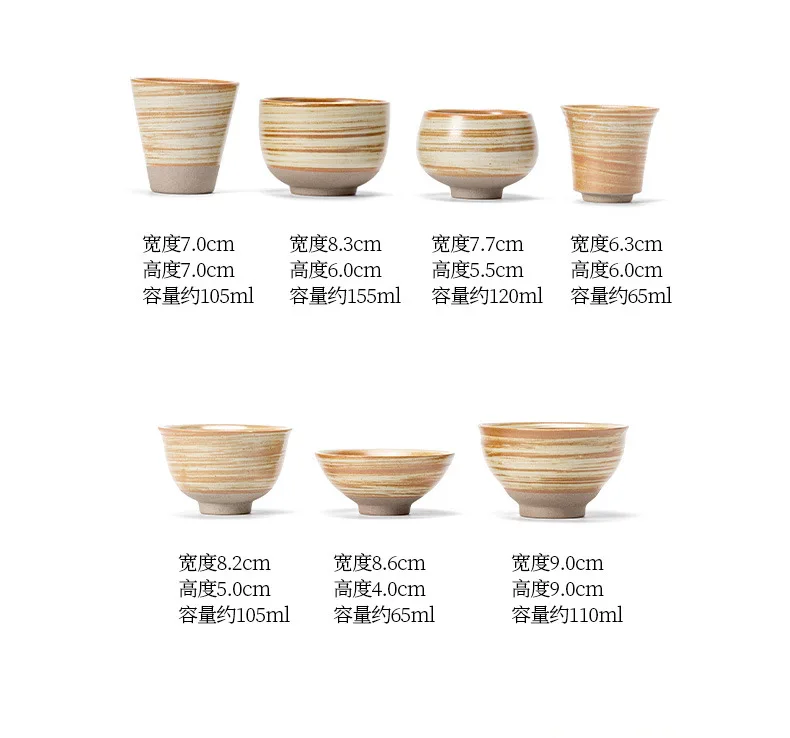 The clay is used as the embryo, handcrafted by craftsmen, and quenched in a thousand degree kiln fire. The thread texture is rough and natural, and the glaze color is calm like the accumulation of time. There are 8 types of utensils (65-250ml), each of which is a unique product, and holding them in the palm of the hand is a story.
