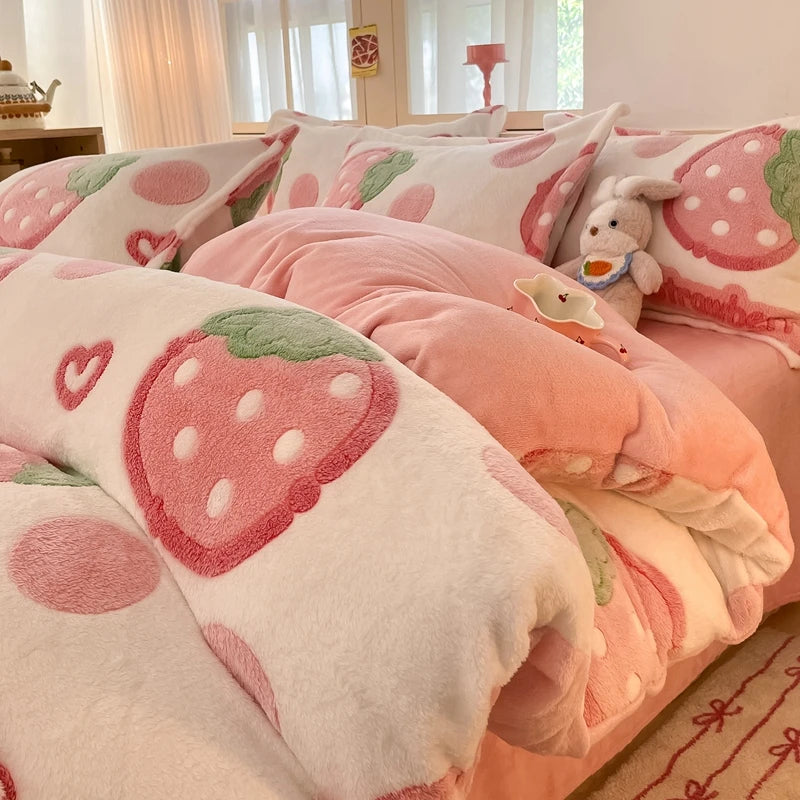 【UNIQUE DESIGN& HOLIDAY GIFT】: This is a warm milk velvet duvet cover with a white cartoon floral design and a bow pattern. In addition, this milk down velvet cover has other styles, and different styles are suitable for bedrooms of all kinds of people. The material is soft and skin-friendly, which is very suitable for the cold autumn and winter seasons.