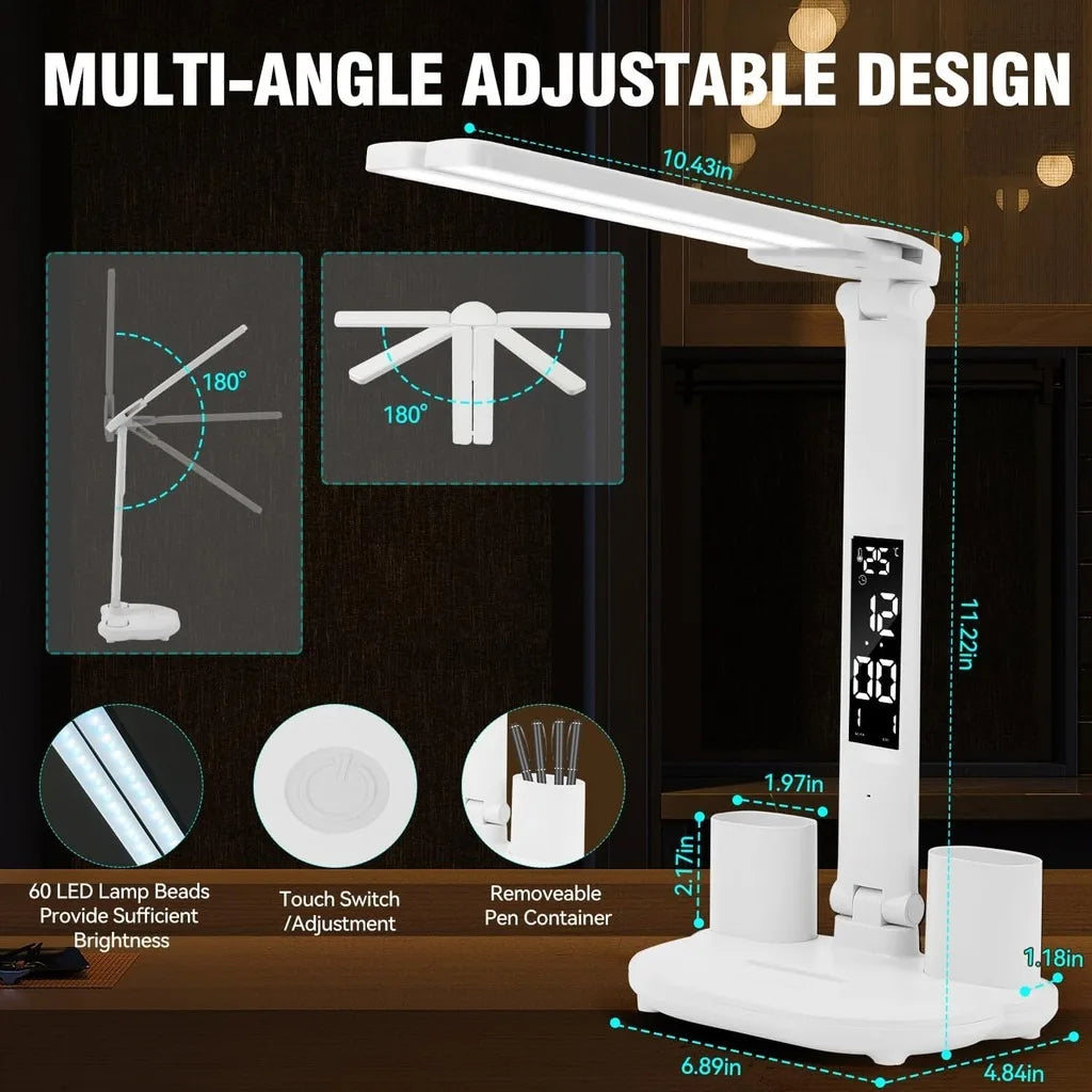 • Iluminação LED:Equipado com lâmpadas LED, este candeeiro de secretária proporciona uma iluminação clara e brilhante, melhorando a sua experiência de leitura ou de trabalho.